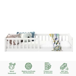 Possui Estrado: Sim Ideal Para cama: Padrão Solteiro 188x88 Possui Colchão: Não Possui Gavetas: Não Estilo: Montessoriano Ambiente Principal: Quarto Infantil Precisa de Montagem: Sim Sistema de Montagem: Minifix / Cavilhas / Parafusos. Complexidade da Montagem: Fácil Volumes: 02 Garantia do Fabricante: 12 meses Montagem: Recomendamos que seja feita por um . Manual de Montagem: Sim