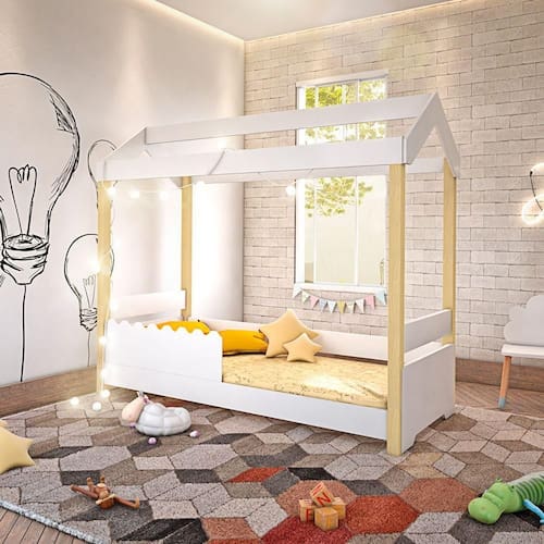 Cama Montessoriana Infantil Casinha Solteiro Jhulia Grade Branca - Branco E - Cor: Branco Cama Montessoriana Infantil Casinha Solteiro Jhulia Grade Branca - Branco E Cama Solteiro Jhulia possui elegância e modernidade sem perder o conforto. Além de seu design divertido de ?casinha?.Tipo: CamaModelo: JhuliaCor: Branco e Cor Grade: Branco Possui duas grades de proteção (dois lados)Material 100% MDFPés em madeira maciçaPintura UV Verniz BrilhoNão acompanha colchão e ledImagens ambientadas apenas para demonstração (objetos não acompanham o produto)Medidas:Altura: 162cmLargura: 99cmComprimento: 200ATENÇÃOIMAGENS MERAMENTE ILUSTRATIVAS REALIZADO EDIÇÃO, PODENDO HAVER UMA PEQUENA VARIAÇÃO DE COR DEPENDENDO DE CADA TELA OU MONITOR.Cama Montessoriana Infantil Casinha Solteiro Jhulia Grade Branca - Branco e Marca: Baby Mobilia