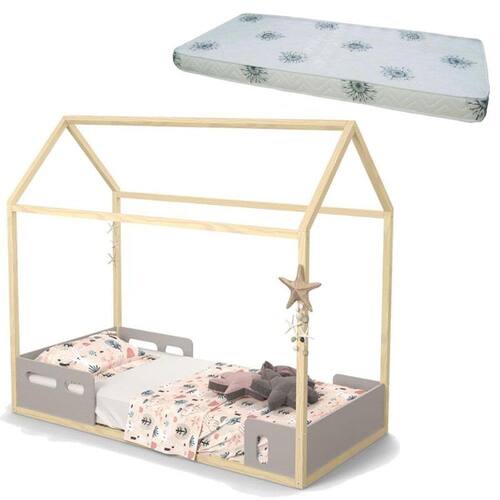 Cama Montessoriana Liv Cinza Natural com Colchão – Matic