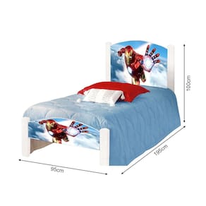 Cama Montessoriana Solteiro Infantil Adesivada Homem de Ferro com Grade de Proteção - Branco