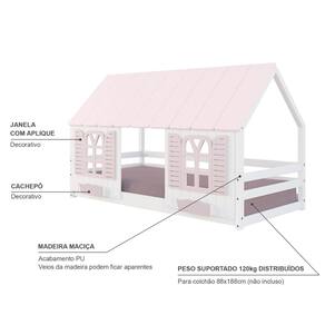 Acabamento: Branco/ Rosa PU (pode mostrar veios da madeira)