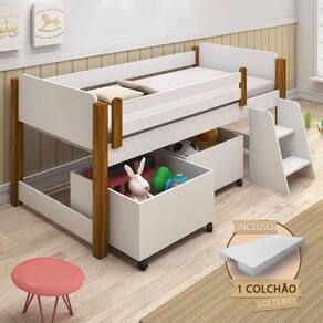 Tipo: Cama Modelo: Naty Cor: Branco e Amêndoa Acompanha Escada Acompanha Báus Acompanha colchão