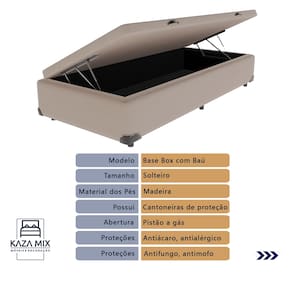 Bem-vindo(a) ao nosso catálogo! Apresentamos a você uma descrição completa sobre esse produto:O Colchão ISO100 é um colchão feito com espuma D33 de alta qualidade para proporcionar conforto e durabilidade incomparáveis. Com o sistema No Turn, não é necessário virar o colchão para manter sua performance. Sua estrutura suporta até 100kg e possui 18cm de altura, perfeito para uma noite de sono tranquila e revigorante.Colchão:Modelo: ISO100;Marca: Ortobom;Tamanho: Solteiro;Dimensões: 88x188x18cm; (largura x comprimento x altura)Conforto: Espuma D33;Proteções: Antiácaro, antialérgico, antifungo, antimofo;Possui: Sistema No Turn;Peso máximo recomendado: até 100Kg (por pessoa);Garantia: 03 meses; Qualidade Ortobom: O Colchão ISO100 é produzido pela renomada marca Ortobom, conhecida por sua expertise em tecnologia do sono. Com anos de experiência no mercado, a Ortobom é reconhecida por oferecer produtos inovadores e de alta qualidade, que atendem às necessidades dos clientes mais exigentes.Base Box com Baú:Marca: KazaMix;Cor do Baú: Bege;Revestimento da Cama: Material Sintético;Material dos pés: Madeira;Estrutura: Madeira;Abertura: Pistão a gás;Peso máximo recomendado: até 150kg de cada lado;Altura do Baú: 32cm;Altura dos pés: 5cm;Altura total: 37cm;Garantia: 03 meses;Selo Ecologicamente Correto.Invista no seu sono e experimente o conforto e a qualidade!Atenção: Antes de finalizar sua compra, certifique-se de que as dimensões do produto sejam adequadas para serem transportadas pelos elevadores, portas, escadas e corredores de sua residência. Ressaltamos que não nos responsabilizamos pelo transporte do produto por meios específicos, como escadas, guinchos ou içamentos.