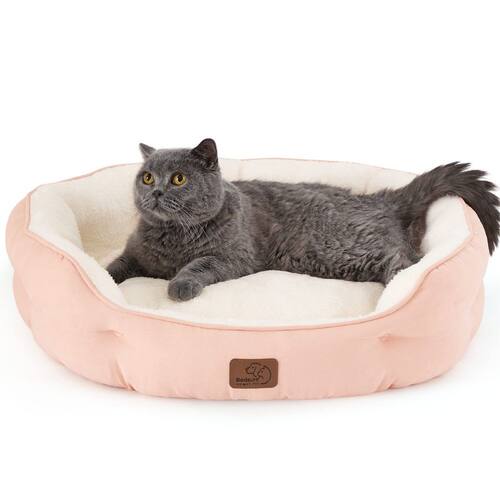 Bedsure Cama pequena para cães pequenos lavável – camas redondas para gatos internos, cama redonda para animais de estimação para filhotes e gatinhos com fundo antiderrapante, 63 cm, rosa pêssego - Extra macio: satisfaça seu animal de estimação com conforto luxuoso com a superfície de sherpa de pelúcia, proporcionando suavidade fofa e ultraaconchegante. Cria um ambiente de descanso aconchegante para o seu amado companheiro relaxar e experimentar o melhor relaxamento. - Conforto melhorado: o design de reforço redondo promove o máximo conforto e segurança, oferecendo ao seu animal de estimação uma variedade de posições aconchegantes para se aconchegar. A forma acolchoada é profundamente preenchida para apoiar a cabeça e o pescoço do seu animal de estimação para um sono mais reparador. - Enchimento premium: com um enchimento de fibra de poliéster ultramacio, esta cama para cães oferece alívio das articulações e dos músculos. E pode manter sua forma e loft mesmo após uso prolongado, garantindo uma experiência consistentemente confortável para o seu amigo peludo. - Seguro para animais de estimação: esta cama padrão 100 certificada para cães e gatos cria um espaço seguro e confortável para o seu animal de estimação relaxar e rejuvenescer. A parte inferior antiderrapante adiciona estabilidade, evitando escorregões e protegendo seu animal de estimação. - Fácil de cuidar: com sua almofada removível, esta cama de cachorro é fácil de manter. Basta lavar à máquina inteiramente em água fria e em um ciclo suave para uma restauração como nova.