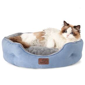 Bedsure Cama pequena para cães pequenos lavável – camas redondas para gatos internos, cama redonda para animais de estimação para filhotes e gatinhos com fundo antiderrapante, 50 cm, azul gelo - Extra macio: satisfaça seu animal de estimação com conforto luxuoso com a superfície de sherpa de pelúcia, proporcionando suavidade fofa e ultraaconchegante. Cria um ambiente de descanso aconchegante para o seu amado companheiro relaxar e experimentar o melhor relaxamento. - Conforto melhorado: o design de reforço redondo promove o máximo conforto e segurança, oferecendo ao seu animal de estimação uma variedade de posições aconchegantes para se aconchegar. A forma acolchoada é profundamente preenchida para apoiar a cabeça e o pescoço do seu animal de estimação para um sono mais reparador. - Enchimento premium: com um enchimento de fibra de poliéster ultramacio, esta cama para cães oferece alívio das articulações e dos músculos. E pode manter sua forma e loft mesmo após uso prolongado, garantindo uma experiência consistentemente confortável para o seu amigo peludo. - Seguro para animais de estimação: esta cama padrão 100 certificada para cães e gatos cria um espaço seguro e confortável para o seu animal de estimação relaxar e rejuvenescer. A parte inferior antiderrapante adiciona estabilidade, evitando escorregões e protegendo seu animal de estimação. - Fácil de cuidar: com sua almofada removível, esta cama de cachorro é fácil de manter. Basta lavar à máquina inteiramente em água fria e em um ciclo suave para uma restauração como nova.