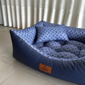 Cama para Cachorro Retangular em Corino + Poliéster Azul LV Extra Grande (XGG) 98 x 65 cm - Informações
