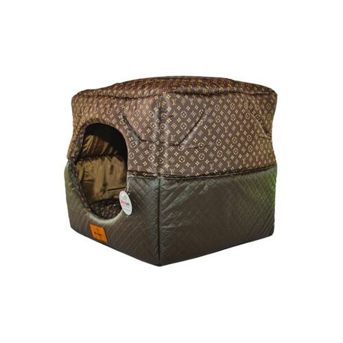 Cama para Cachorro Toca Quadrada em Corino + Poliéster Marrom Escuro LV Média (M) 40 x 40 x 40 cm