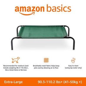 Cama elevada respirável e respirável Amazon Basics com estrutura metálica durável, para cães grandes, GG, 60 x 37 x 9 polegadas, verde
