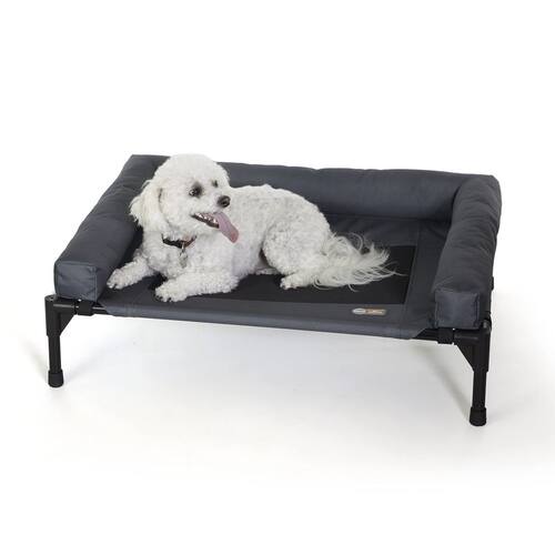 K&H Pet Products Berço reforçado para cães, cama de cama elevada para uso interno e externo com almofadas laváveis removíveis, capa de malha lavável, moldura de metal elevada - médio 81 x 63 cm carvão