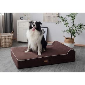 - ? Cama ortopédica extragrande para cães: esta cama jumbo para cães tem 127 cm de largura e 86 cm de largura, feita de espuma de memória de 17 cm de espessura que alivia a pressão nas articulações e possui um apoio de cabeça de 7,6 cm de espessura que suporta a cabeça do cão, para conforto ideal.