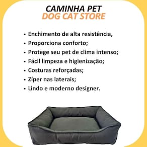Benefícios - enchimento de alta resistência, fibra siliconada; - protege o seu pet do clima intenso, frio ou calor; - proporciona conforto; - fácil limpeza e higienização; - costuras reforçadas; - zíper nas laterais; - lindo e moderno designer.