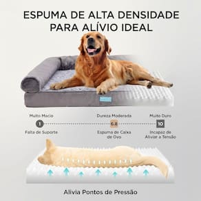 Diferenciais do Produto Suporte Ortopédico Avançado A base é composta por espuma de alta densidade (6.8) no formato "casca de ovo", que auxilia na distribuição uniforme do peso do animal. Esse design reduz os pontos de pressão nas articulações, sendo altamente recomendada para pets idosos ou com problemas de mobilidade.