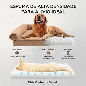 Diferenciais do Produto Suporte Ortopédico Avançado A base é composta por espuma de alta densidade (6.8) no formato "casca de ovo", que auxilia na distribuição uniforme do peso do animal. Esse design reduz os pontos de pressão nas articulações, sendo altamente recomendada para pets idosos ou com problemas de mobilidade.