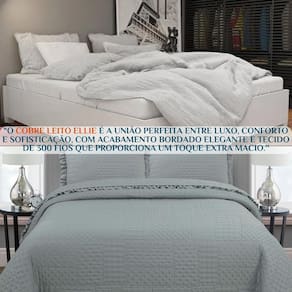 Cama Posta Queen Ellie 300 Fio Colcha Luxo 100% algodao Bordado COR: CINZA Durma como em hotel 5 estrelas com o Cobre Leito Ellie 300 fios