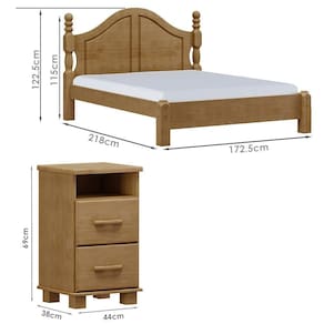 Conjunto Cama Queen Classica 02 Mesas de Cabeceira projetado para proporcionar charme, sofisticação e funcionalidade ao seu ambiente. A cama, com design clássico e atemporal, é produzida em madeira maciça de pinus de reflorestamento, garantindo resistência e durabilidade. Sua pintura acetinada com verniz PU e UV oferece um acabamento refinado e proteção extra, realçando a beleza natural da madeira. Os pés torneados em madeira maciça adicionam um toque de elegância e robustez à estrutura. Ideal para colchão de casal tamanho 1,58x1,98m. Não acompanha colchão. As mesas de cabeceira, também em madeira maciça de pinus de reflorestamento, seguem o mesmo padrão de qualidade e acabamento. A pintura acetinada com verniz PU e UV proporciona um toque suave e resistente, realçando a beleza da madeira e protegendo contra desgastes. Com 02 gavetas equipadas com corrediças telescópicas para deslizamento suave e um nicho adicional para organização de livros ou objetos decorativos, as mesas de cabeceira aliam praticidade e sofisticação. O tampo de 25mm de espessura confere robustez ao design, enquanto os puxadores e pés em madeira maciça garantem um acabamento natural e refinado. Juntos, esses móveis criam um ambiente harmonioso, perfeito para o seu descanso e organização. Estes móveis chegarão em sua casa separados em 06 volumes.