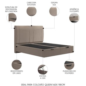 A Cama Queen Flutuante Baú Cabeceira 160cm Fly S05 Linho Bege, da Mpozenato, é uma cama que representa o ápice do Design Moderno.