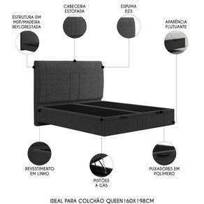A Cama Queen Flutuante Baú Cabeceira 160cm Fly S05 Linho Preto, da Mpozenato, é uma cama que representa o ápice do Design Moderno.