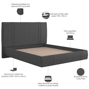 Cama Queen Flutuante Com Cabeceira 160cm Astra S04 Linho Preto - Lyam Decor