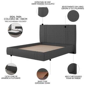 Que tal ter uma cama confortável, elegante e super moderna? Conheça a Cama Queen Flutuante Com Cabeceira 160cm Lyra S05 Linho Preto, da Mpozenato!
