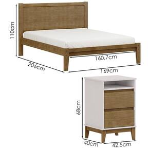 Estrutura: Cama em Madeira Maciça; Mesa de Cabeceira em MDF