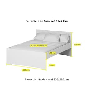 Cama Reta De Casal Com 4 Gavetas Ilan 1254 Branca * Imagens meramente ilustrativas. Cama com Cabeceira Reta de casal com 4 gavetas para excelente aproveitamento do espaço disponível. Estrado da cama na horizontal e totalmente reforçado: super resistente. Para colchões de casal padrão 138x188cm. - lindo modelo, fácil montagem; - 4 gavetas espaçosas; - estrado super reforçado; - pode ser montada e desmontada sem problema; Para colchão de casal 138x188 cm. DIMENSÕES DO PRODUTO MONTADO: ALTURA 92 CM LARGURA 146 CM PROFUNDIDADE 191 CM Manual de montagem disponível no site do fabricante. Atenção: Não nos responsabilizamos, no ato da , por desmontagens, subir escadas/elevadores ou transporte por guincho para apartamentos. Eventuais despesas são de responsabilidade do cliente. Confira as dimensões deste produto e certifique-se de que o mesmo passará normalmente por supostos elevadores, portas, escadas e/ou corredores de sua moradia.