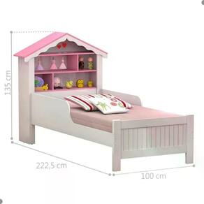 A Casinha é feita em um design totalmente moderno e exclusivo, com cabeceira em formato de casa e prateleiras em MDP para acomodar objetos.