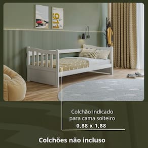 Principais Características: Modelo: SF005 Material: Madeira maciça de Pinus e MDF grosso de 2,2 cm Acabamento: Pintura PU e UV 30% brilho Capacidade de peso: 120 kg Tamanho do colchão recomendado: 188x88 cm (não incluso)
