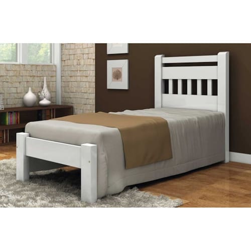 DESCRIÇÃO: Altura cabeceira: 117 cm Largura: 110 cm Comprimento: 200 cm Espaço entre o chão e o estrado: 26 cm (Aproximadamente) Peso suportado: 200 kg Ideal colchões de medidas: 110 X 200 cm Material Utilizado: Cabeceira e Peseira: Madeira Maciça Tauari Laterais: Laminado Naval de Alta Resistência Sarrafos: Madeira Tauari Ripas: Madeira Pinus Suportes: Plástico.