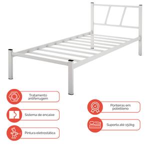 Lateral, pés e cabeceira: Tubo 50x30x0,90 Travas pés e cabeceira: tubo 30x20x0,75 Desenho cabeceira: tubo 30x20x0,75 Lateral Estrado: Tubo 50x20x0,90 Travessa Estrado: tubo 30x20x0,75 Sistema de encaixe Sistema de pintura eletrostática Banho com tratamento antiferrugem Acabamento com ponteiras em polietileno