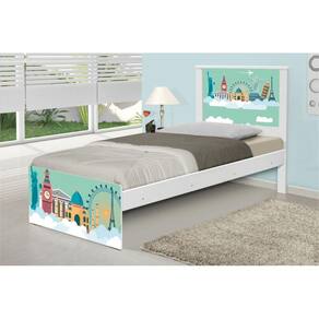Cama Solteiro Juvenil Barcelona Adesivada Mundo Viagens com Colchão