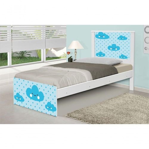 A Cama Barcelona Adesivada Nuvem Menino é a cama que você procurava para completar seu dormitório com beleza e conforto. A Coleção Nuvem Menino foi desenvolvida por nossos designers oferecendo um visual exclusivo, descontraído e divertido ao ambiente. Perfeita para ter ótimas noites de sono, com todo o espaço necessário para dormir bem recuperando as energias durante toda a noite. Feita em MDF e MDP e seu acabamento é feito com pintura UV brilhante tornando-a um produto resistente e com aspecto de novo por muito mais tempo. É uma excelente escolha para acomodar colchões de solteiro na medida de 88 cm de largura.