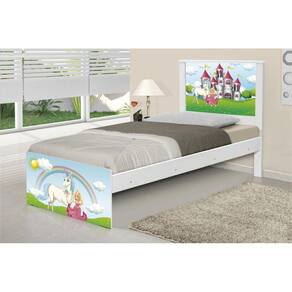 Cama Solteiro Juvenil Barcelona Adesivada Princesa Encantada com Colchão