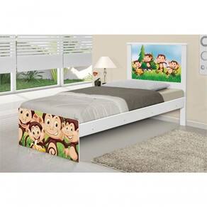 Cama Solteiro Juvenil Barcelona Adesivada Safari Macaquinhos com Colchão