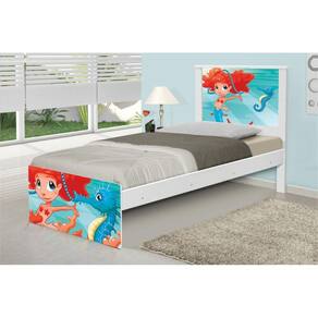Cama Solteiro Juvenil Barcelona Adesivada Sereia Ruiva com Colchão
