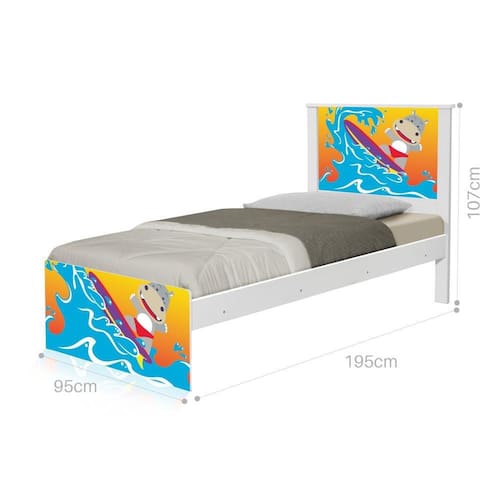 Cama Solteiro Juvenil Barcelona Adesivada Surfista