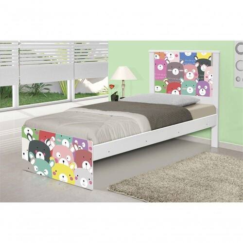 Cama Solteiro Adesivada Ursinhos Coloridos Com Colchão Cama Solteiro Juvenil Barcelona Adesivada Ursinhos Coloridos com Colchão Ref. 1410