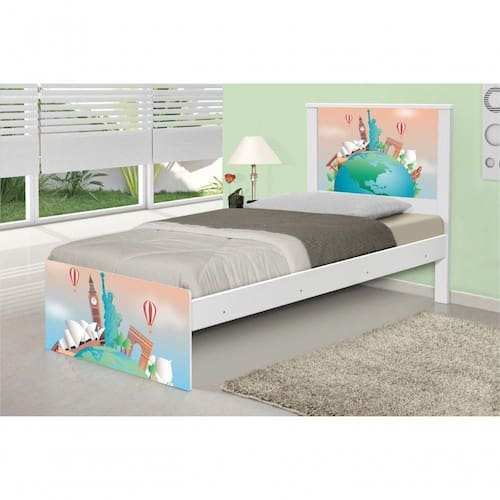 A Cama Barcelona Adesivada Volta ao Mundo é a cama que você procurava para completar seu dormitório com beleza e conforto. A Coleção Volta ao Mundo foi desenvolvida por nossos designers oferecendo um visual exclusivo, descontraído e divertido ao ambiente. Perfeita para ter ótimas noites de sono, com todo o espaço necessário para dormir bem recuperando as energias durante toda a noite. Feita em MDF e MDP e seu acabamento é feito com pintura UV brilhante tornando-a um produto resistente e com aspecto de novo por muito mais tempo. É uma excelente escolha para acomodar colchões de solteiro na medida de 88 cm de largura.