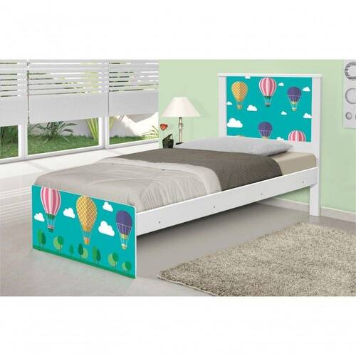 Cama Solteiro Juvenil Barcelona Adesivada Balões no Céu com Colchão