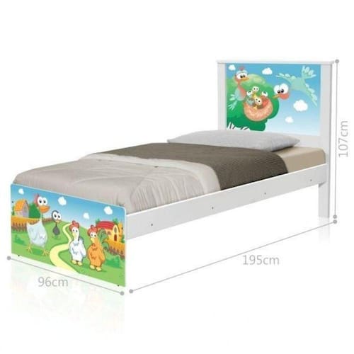 Cama Solteiro JuvenilBarcelona 107x96x195 cm - AdesivadaFazendinha