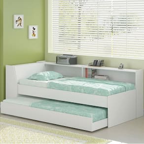 Apresentamos a Cama Solteiro Bicama Com Estante, uma solução prática e elegante para otimizar seu espaço com conforto e estilo. Com estrutura robusta em MDP 15mm, que oferece mais durabilidade e resistência. Ideal para quartos compactos, permitindo acomodar visitas sem complicações e para quem busca versatilidade sem abrir mão do conforto. A Cama com 220cm de comprimento x 88cm de largura, conta com uma cama auxiliar com rodízios que facilitam a abertura ou fechamento, proporcionando uma cama extra sem ocupar espaço permanente. A cabeceira baú proporciona espaço extra para armazenar roupas de cama, travesseiros e outros itens de sua preferência. A Estante de 220cm de comprimento x 25cm de profundidade, é ideal para quartos compactos. Ela conta com dois nichos com espaço aberto para facilitar acesso a itens essenciais. Combina um design moderno com funcionalidade, adicionando um toque de sofisticação à decoração do ambiente. Invista neste móvel e transforme seu espaço com praticidade e elegância. Indicado colchão solteiro 78x188x12cm. Indicamos que o colchão tenha no máximo 12cm de altura para ocorrer o fechamento total da cama auxiliar. Este móvel chegará em sua casa separado em 03 volumes.