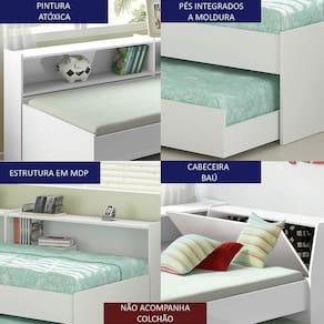 Cama Solteiro Bicama Bau Estante 2 Nichos BB2829 Dtall