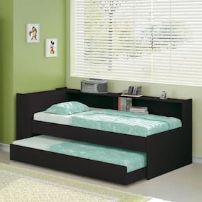Seu quarto vai ficar muito mais bonito e organizado com a Bicama com Estante e 2 COLCHÕES Ditália, Alt. 80 x Larg. 219,6 x Prof. 113 cm, Peso Bruto 56,20 kg - O produto possui design moderno e funcional, estante e um amplo baú para armazenamento. Possui 2 camas, sendo uma auxiliar com rodizíos, que suportam até 85 kg cada.