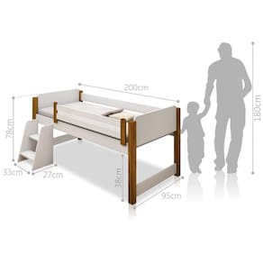 A distância entre o estrado e o chão é de 38 cm de altura.
