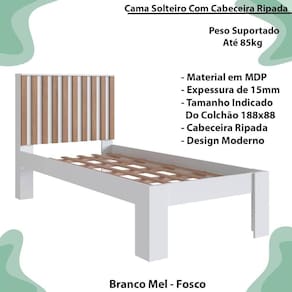 - Modelo: Cama Solteiro Cabeceira Ripada 108X206cm PRODDY