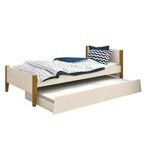 Cama Solteiro com Auxiliar Simba Areia Acetinado com Pés Madeira – Reller