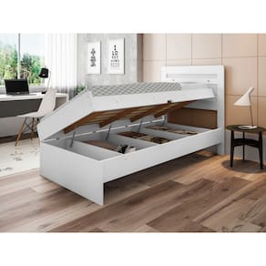Cama Larissa Baú: Organização e Estilo ao Alcance da sua Mão! CARACTERÍSTICAS- Interno: - Dobradiças metálicas- 4 Pistões a gás- Design inovador- Dimensões cama baú Larissa: 0.98cm x 1.95cm x1.10cm ( Larg x Comprimento x Alt )- Profundidade interna Baú: 0.14cm- Material MDF / MDP- A posição da abertura da Cama Baú, poderá ser alterada no momento da montagem.( Importante que seja feita por um profissional)OBS: Cama: Utiliza colchão 0,88 x 1,88 ( VENDIDO SEPARADAMENTE )NÃO ACOMPANHA COLCHÃO. MONTAGEM NÃO INCLUSA.