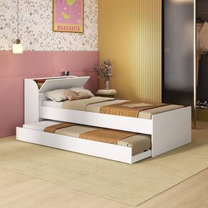 Seu design versátil se adapta facilmente a quartos de solteiro, juvenis ou de hóspedes, tornando o ambiente mais funcional e acolhedor. Produto Montado: Sim Acabamento da Porta: Finish Foil Acompanha Cama Auxiliar: Sim Acompanha Colchão: Não Altura do Estrado até o Chão: 40 cm Ambiente Principal: Quarto Cama Auxiliar Acompanha Colchão: Não Cama Auxiliar com Rodízio: Não Cama Auxiliar Suporta Até (kg): 80 kg codigo_ean: 7900288283849 Complexidade da Montagem: Média: pode ser montado por mais de uma pessoa e/ou necessite de maior conhecimento para montagem Cor: Branco Cor do Produto: Branco Escala de Brilho: Fosco Escala de Brilho da Porta: Fosco Extensível: Não Itens Inclusos: 1 Cama, 1 Cama Auxiliar, Kit Ferragem e Manual de Montagem Linha ou Coleção: Lumina Manual de Montagem e Instalação: https://product-hub-prd.madeiramadeira.com.br/322925329/documents/48540ba2-8e77-4896-b82e-e88b058b5af23305874547517618766904697.pdf Marca: Espresso Móveis Material da Porta: MDP Material do Estrado: MDF Material Principal: MDP Necessita Montagem: Sim Origem do Produto: Nacional Permite a Utilização de Cama Auxiliar: Sim Peso: 77 kg Possui Baú: Sim Possui Gavetas: Não Possui Nichos: Não Possui Pés: Não Possui Portas: Sim Possui Prateleiras: Não Possui Rodízio: Não Quantidade de Portas: 01 Recomendações de Uso, Manutenção e Limpeza: Utilizar Pano Úmido Sistema de Montagem: Parafusos, pregos e cavilhas Tamanho da Cama: Solteiro Tamanho do Colchão Indicado (L x C): 188 cm (comprimento) x 88 cm (largura) Tamanho do Colchão Indicado Cama Auxiliar: 188 cm (comprimento) x 78 cm (largura) Tipo de Cama: Convencional Tipo de Colchão: Solteiro Tipo de Dobradiça/Corrediça da Porta: Plástica Tipo de Estrado: Fixo Tipo de Porta: Bater Tipo de Puxador da Porta: Embutido