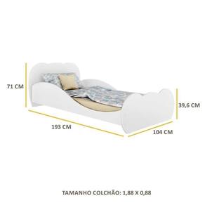 A Cama Solteiro com Colchão Incluso 88 x 188cm 100% MDF Safira Multimóveis é a opção perfeita para garantir o conforto e bem-estar que você merece! Com um colchão D23 de qualidade, macio e especialmente desenvolvido com tratamento anti-ácaro e anti-alérgico, suas noites de sono serão muito mais tranquilas e revigorantes. Além disso, a cama é produzida em 100% MDF, material resistente e durável, proporcionando maior estabilidade. Seu acabamento em pintura UV garante uma superfície lisa ao toque e fácil de limpar. A barra lateral de proteção oferece segurança extra durante o sono, enquanto sua estrutura suporta até 90kg sem comprometer seu design moderno. O charme desta incrível cama fica por conta da cabeceira e peseira em formato de nuvem que trazem um toque lúdico ao ambiente.