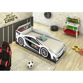 Cama Solteiro de Carro Branco com Baú Mais Colchão