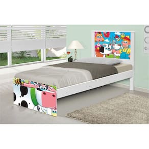 Cama Solteiro Juvenil Barcelona Adesivada Fazendinha Feliz com Colchão